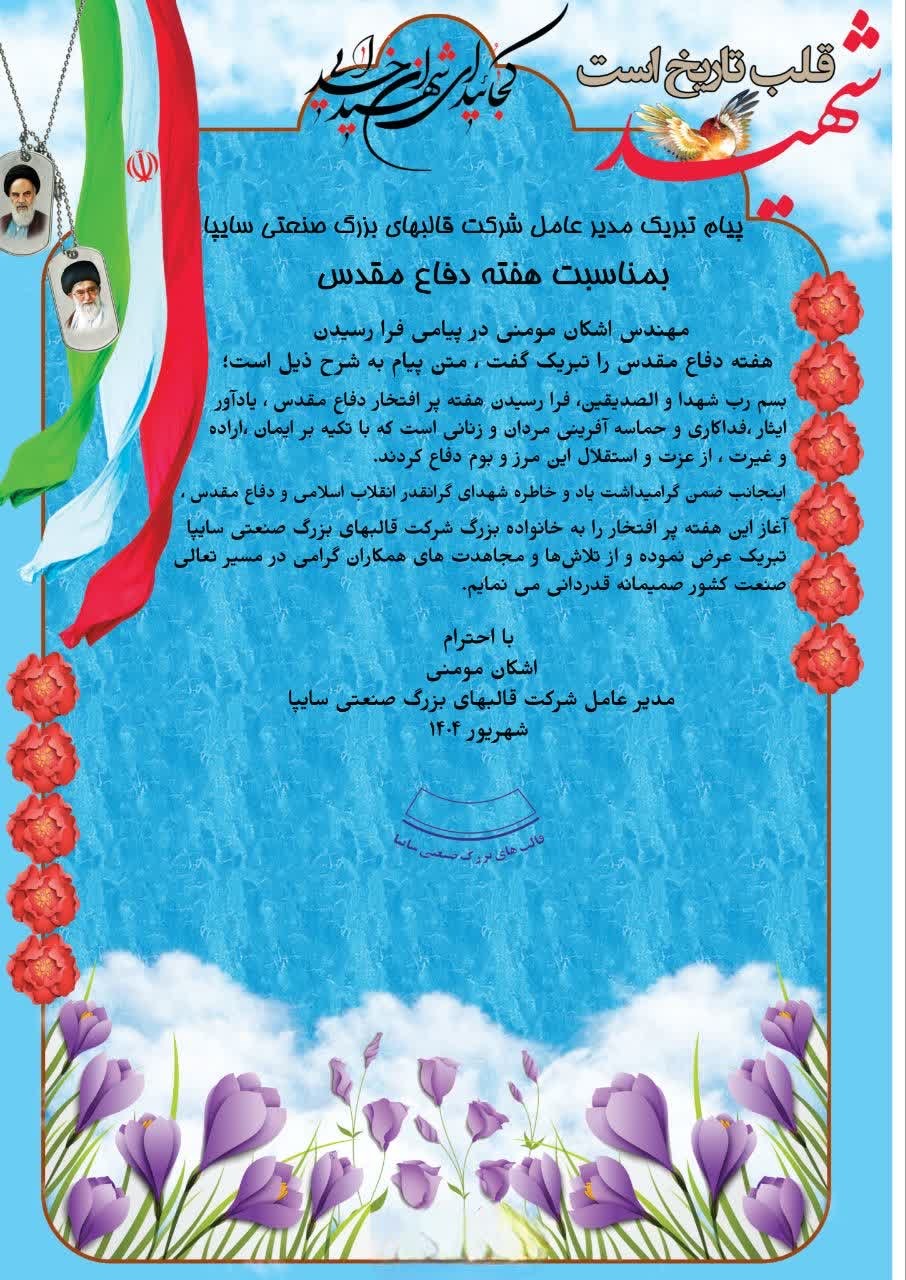 3. پیام تبریک مدیرعامل شرکت قالبهای بزرگ صنعتی سایپا بمناسبت هفته دفاع مقدس